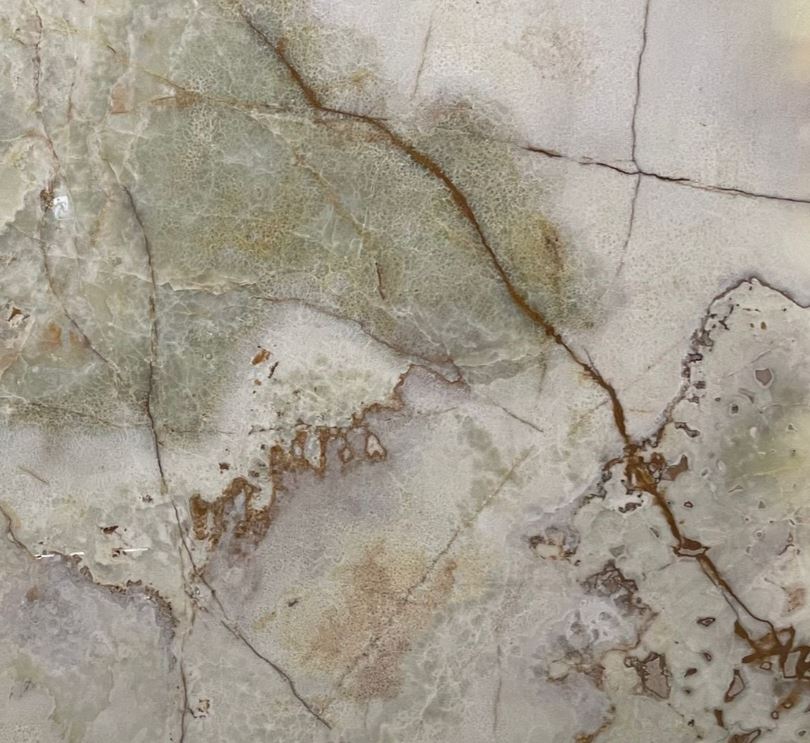 Mint Onyx is a luxurious translucent stone admired for its soft, soothing palette of pale green tones blended with hints of cream, white, and warm golden veining. Its naturally glowing depth and elegant crystal-like texture make it a standout choice for statement pieces. When backlit, Mint Onyx beautifully illuminates, enhancing its layered patterns. Ideal for feature walls, vanity tops, bars, and artistic interior accents.