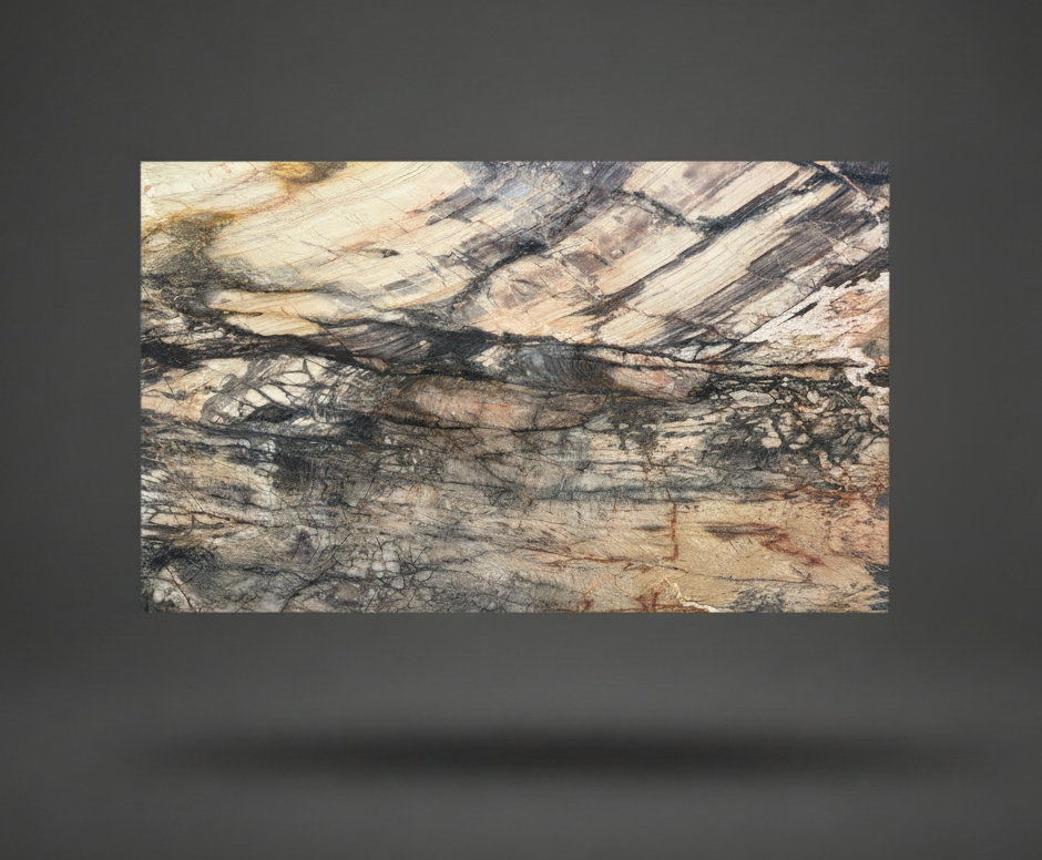 Sandal Quartzite is a stunning natural stone known for its dramatic vein movement and rich, earthy color palette. It features blends of warm beige, caramel, charcoal, and soft cream veining that create a bold, organic pattern. Highly durable and heat-resistant, Sandal Quartzite is ideal for kitchen countertops, feature islands, splashbacks, and statement wall panels — offering both elegance and long-lasting performance.